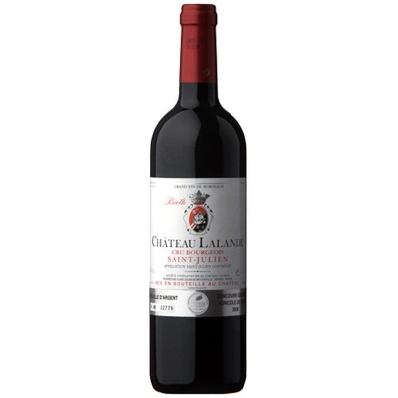 Druif: 55% Cabernet Sauvignon, 35% Merlot, Cabernet Franc, Petit VerdotNeus: Stevig donker fruit, vol concentratieSmaak: een vlezige, sensuele, smaak met veel concentratieWijn-Spijs: Een wijn om van te genieten bij rijke vleesgerechten . Perfect genietbaar op zich bij een goed boek/gesprek/film...Temperatuur: Serveren bij 18 °CWanneer u van Bordeaux naar het noorden rijdt ligt Saint-Julien in het midden van alle grote wijngemeenten van de Haut-Médoc.De beroemde wijngemeente Saint-Julien herbergt elf geclassificeerde cru's waarvan Château Leoville-Las-Cases en Gruaud Larose wel de bekendste zijn. De bodem bevat veel kiezel en klei. De wijnen van Saint-Julien zijn fijn, evenwichtig elegant, mooi vol met veel finesse. Ze kunnen goed ouderen mits afkomstig uit een goed wijnjaar.Château Lalande bestaat uit 32 hectare wijngaarden. Deze liggen aan de weg van Saint Laurent de Médoc naar Beychevelle. De belangrijkste druiven in de wijngaarden van Château Lalande zijn de Cabernet-Sauvignon 55% en de Merlot 35%. Dit zijn edele rassen (cepages nobles) die respectievelijk zorgen voor verfijning en structuur. De overige druivenrassen zijn de Cabernet-Franc 5% en de Petit Verdot 5%. De wijnen van Château Lalande zijn traditioneel bereid en zijn op eiken vaten gelagerd.Château Lalande kenmerkt zich door een krachtig bouquet (denk aan getoast hout, vanille, drop en zacht fruit), een vlezige, sensuele, smaak met veel concentratie. De wijn eindigt in een prachtige, evenwichtige finale. Bij deze Saint-Julien gaat het dus niet om volharde kracht, maar veel meer om het raffinement en de delicate smaak.Wijn-Spijs tip: Chateaubriand, rundvlees met pepersaus of champignons.