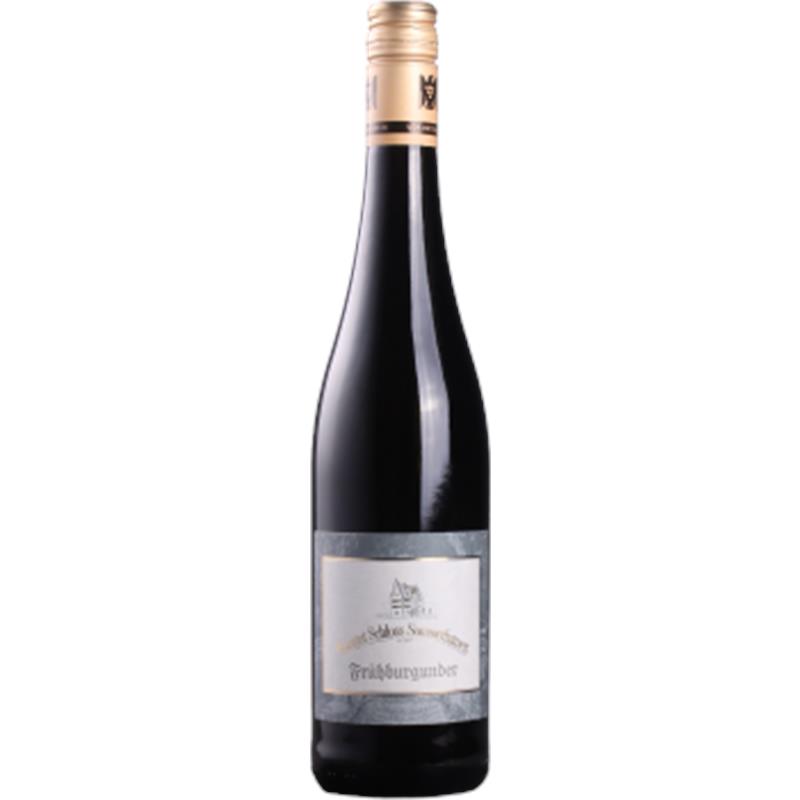 Schloss Sommerhausen, FrühburgunderStreek: Franken, DuitslandGebruikte druiven: FrühburgunderWijnspijs combinatie: Ideaal bij lichte salades, visgerechten, wit vlees en zachte kazenSchloss Sommerhausen dateert uit de 14e eeuw en kent een rijke wijnbouwgeschiedenis. Martin Steinmann, 15e generatie wijnbouwer van deze familie, nam in 2000 de bezielende leiding over van dit 50 hectare tellende domein in Sommerhausen, een klein dorpje vlakbij Würzburg. De bodem in deze regio bestaat uit een massieve laag schelpkalksteen met een dikte van meer dan 10 meter, wat de wijnstokken aanspoort om diep in de grond hun water en voedingsstoffen te zoeken. In 2011 was de conversie naar Biologisch wijnmaken compleet. In 2019 werd de hand gelegd aan een nieuwe kelder, waar de wijnen worden geproduceerd zonder fossiele energie. Sinds 2022 begint zoon Moritz Steinmann het stokje over te nemen van zijn vader. Behalve uitzonderlijke Sekts, produceren Martin en Moritz aromatische, verfijne wijnen met energieke strakheid, met dank aan het kalkrijke terroir.Ontdek de unieke charme van Schloss Sommerhausen Frühburgunder, een authentieke vertegenwoordiger van Franken's wijnbouwerfgoed. Schloss Sommerhausen Frühburgunder 2022 is een mooie volle rode wijn die wordt gekenmerkt door aroma's van kersen, aardbeien, pruimen en rode bessen en uitgebalanceerde zuren. 2022 was een uitstekend wijnjaar, waardoor deze wijn van ongekend hoge kwaliteit is. Deze wijn is veelzijdig in foodpairing, waardoor het een favoriet is onder kenners en liefhebbers van Duitse wijnen.Leuk weetje, de Frühburgunderdruif (Pinot Noir Précoce) is een natuurlijke mutatie van de Spätburgunderdruif (Pinot Noir).